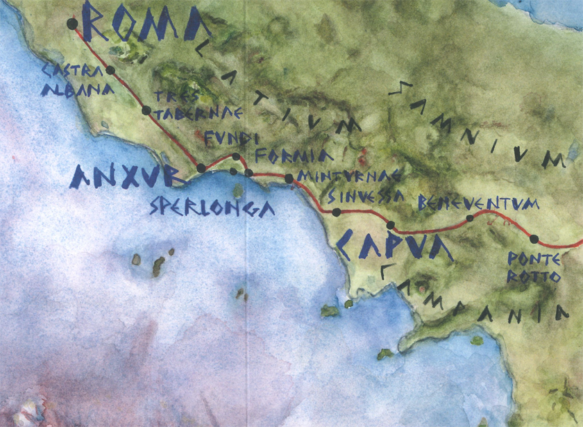 Questo viaggio ha ispirato a Michaël Vandebril un poema epico composto da 455 versi, corrispondenti al numero di miglia romane tra Roma e Brindisi, che riunisce memoria e fantasia in un paesaggio italiano atemporale. L'autore ha incaricato Bart Pluym di illustrare il poema con i suoi disegni del percorso. Op de weg van Appia unisce l'esperienza del cammino con l'evocazione delle tante stratificazioni storiche che segnano l'Appia. Oltre a ciò il poeta riporta fatti interessanti e dà consigli per chi voglia intraprendere un viaggio lungo l'antico percorso. Perché questo è davvero il suo profondo desiderio.