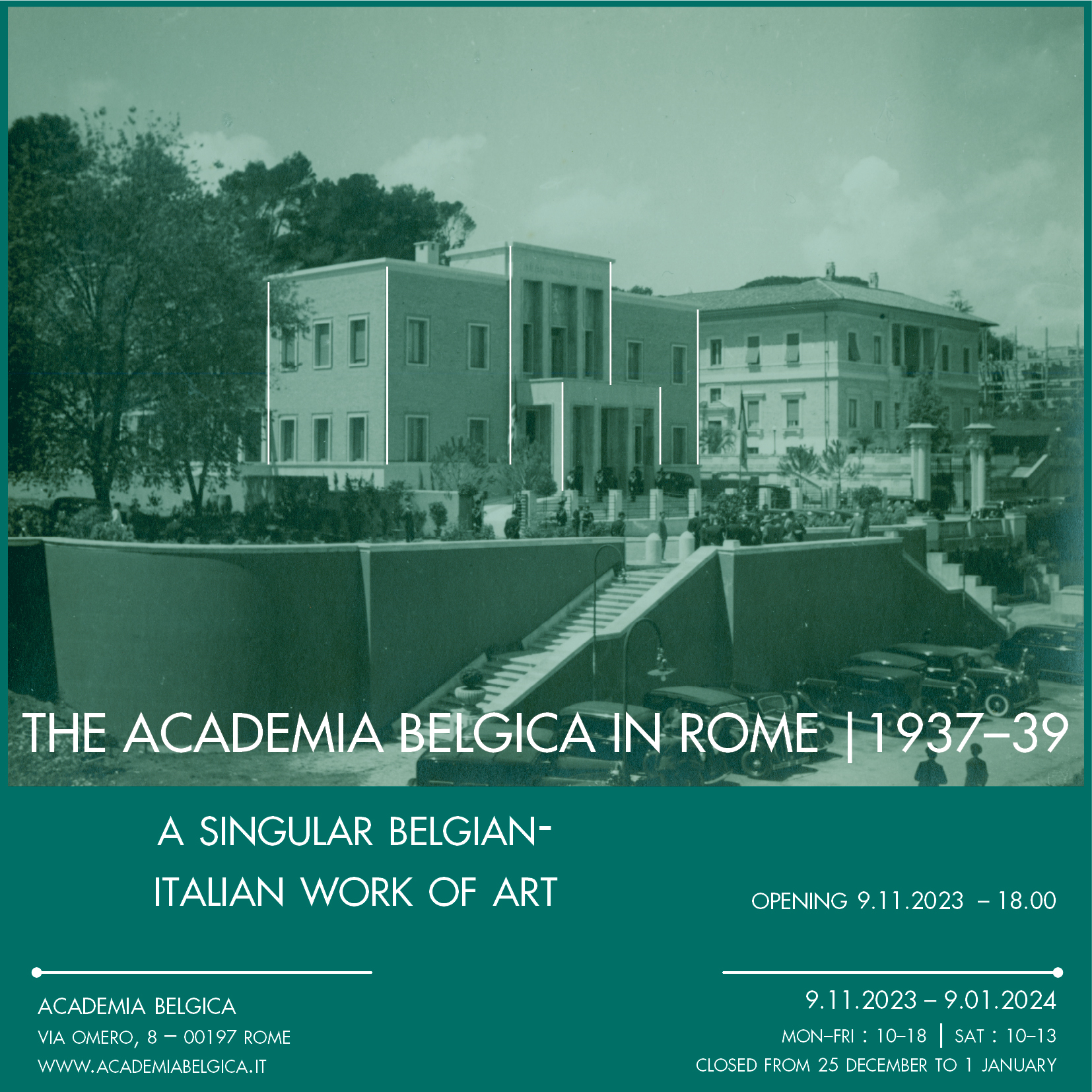 L'esposizione offre, per la prima volta, uno sguardo sulla storia architettonica dell'edificio dell'Academia Belgica e sul suo design interno, in gran parte conservato. Costruito tra il 1937 e il 1939 dall'italiano Gino Cipriani (1890-1972) e dal belga Jean Hendrickx-Van den Bosch (1890-1961) nella celebre Valle Giulia a Roma, l'edificio ha un carattere unico, combinando modernismo e art deco. Si presenta ancora oggi come un notevole esempio di arte globale e di una collaborazione italo-belga senza precedenti.