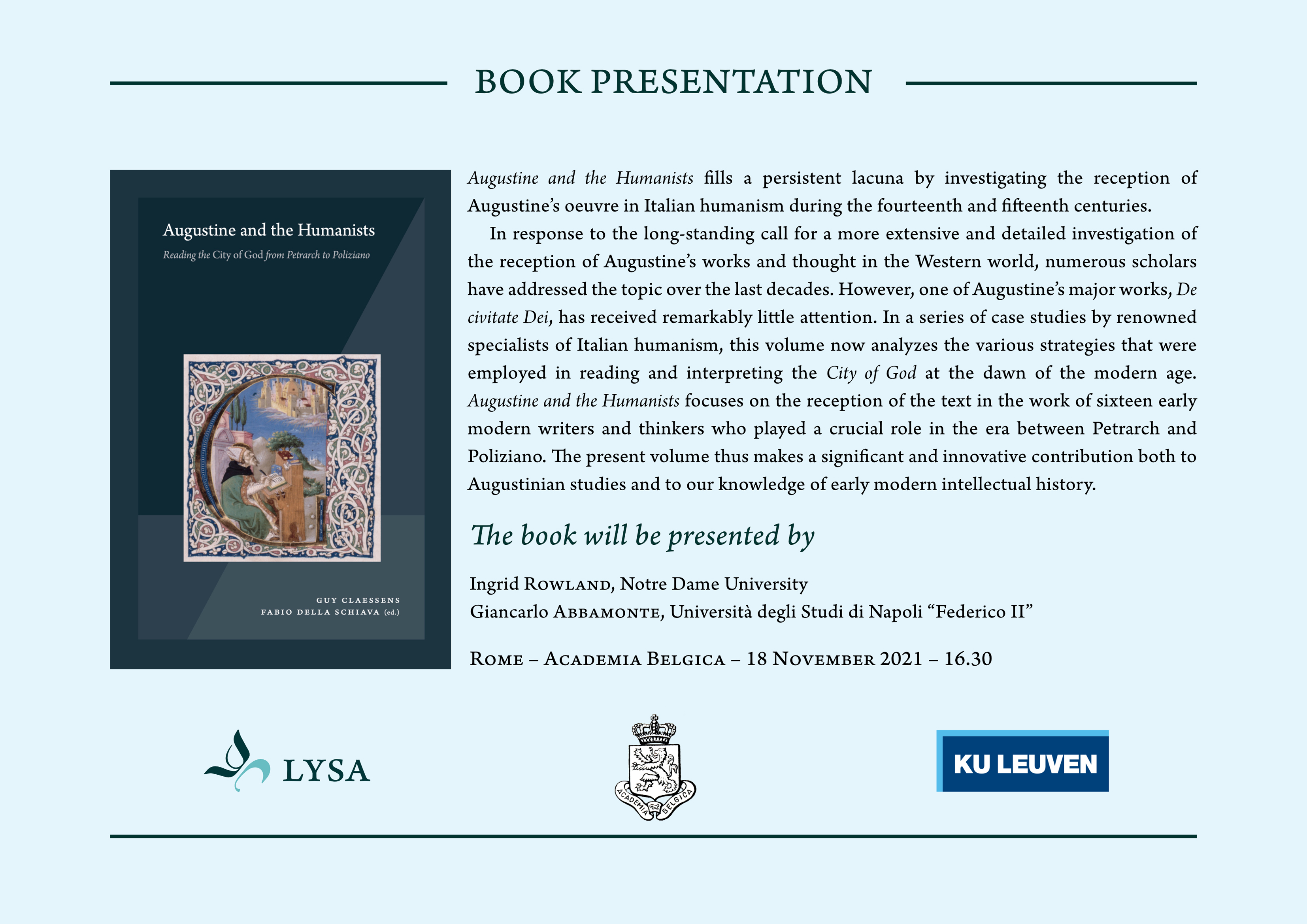The book will be presented by Ingrid Rowland (Notre Dame University) and Giancarlo Abbamonte (Università degli Studi di Napoli “Federico II”).