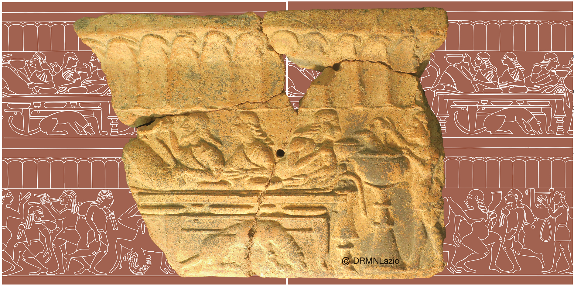 Esposte in numerose occasioni sin dalle prime scoperte negli anni '60, le lastre architettoniche con fregio figurato a stampo della serie Acquarossa-Tuscania sono ora inserite in tutti gli studi sull’architettura palaziale e sull'ideologia principesca dell’Etruria arcaica. A riguardo delle lastre di tipo A e B, in cui il mito di Eracle è invocato per il trionfo del dinasta, le lastre C e D con la loro tematica festiva – un banchetto e un corteo di danzatori – sono rimaste poco studiate sotto due aspetti che le contraddistinguono: la raffinatezza delle figurazioni e la qualità dello stile. Da questa constatazione nasce il presente lavoro, che propone una prima edizione critica dei fregi figurati C e D, sia grafica che fotografica, seguita da una descrizione delle scene vivaci che essi mostrano, inclusa la loro policromia. Corredato da un’abbondante iconografia inedita, l'edizione è completata da tre saggi dedicati alla datazione delle lastre, all’iconografia dei fregi figurati e al loro stile. Ne emerge una visione rinnovata di queste immagini elaborate per l'aristocrazia etrusca nella prima metà del VI sec. a.C., in contatto con il mondo greco e la sua periferia vicino-orientale.