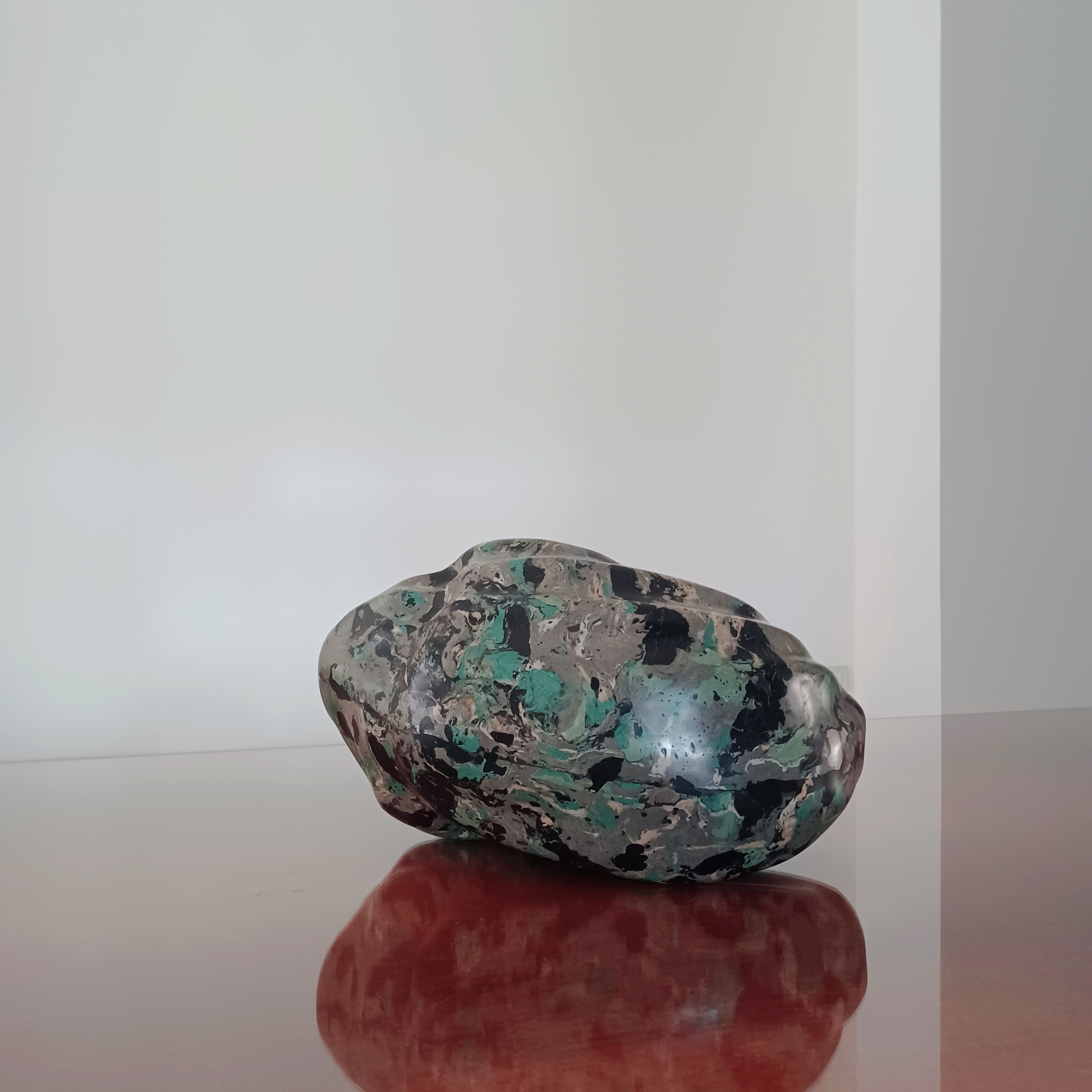 Durante la sua residenza si è ispirata a tecniche decorative italiane secolari come la scagliola, che imita il marmo con gesso e pigmenti, e la pietra dura, che prevede l'intarsio di frammenti di pietra levigata in un disegno per creare immagini geometriche. L'artista utilizza queste tecniche artigianali come punto di partenza per un dialogo contemporaneo.